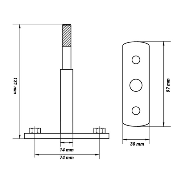Comprimento entre furos: 74 mm